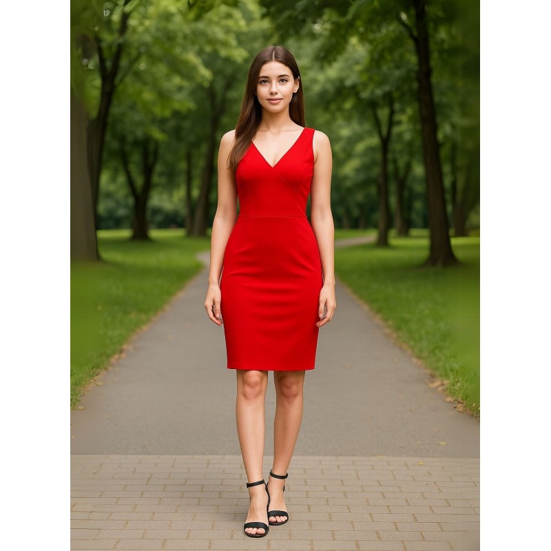 فستان حفر للنساء باللون الأحمر السادة