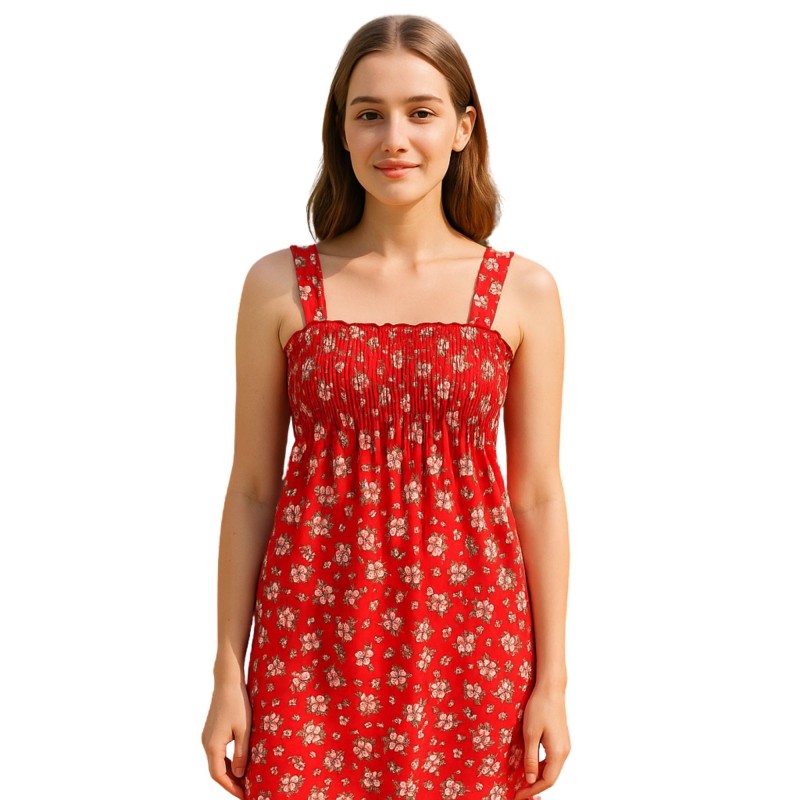 فستان صيفي قصير للنساء مورد لون احمر One Size