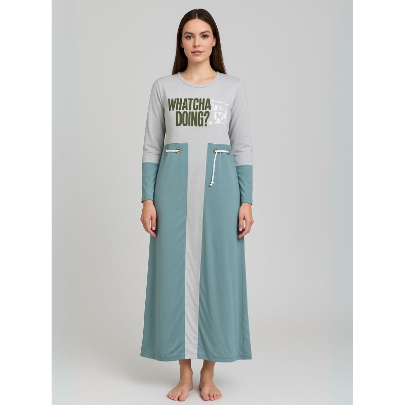 فستان بيتي للنساء لون سكني وأخضر فيروزي