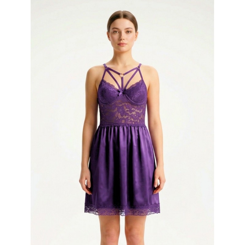 قميص لانجري قصير قطعة واحدة نسائي لون بنفسجي