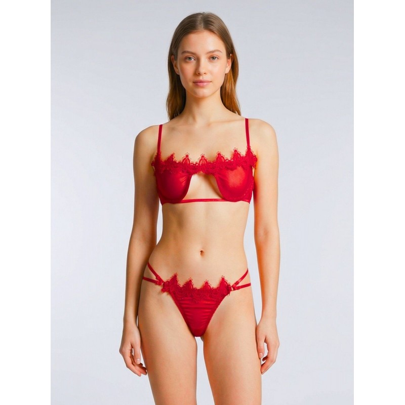طقم قطعتين صدرية وكلوت نسائي لون احمر