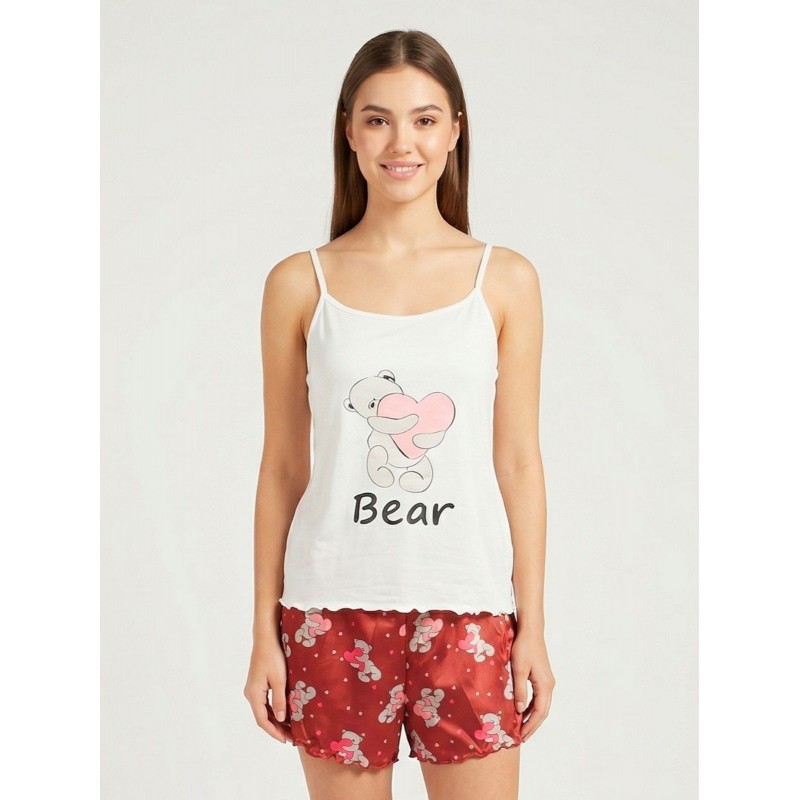 لانجري قطعتين توب وشورت بتصميم دب لون أبيض وأحمر