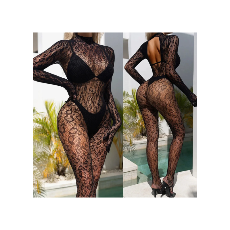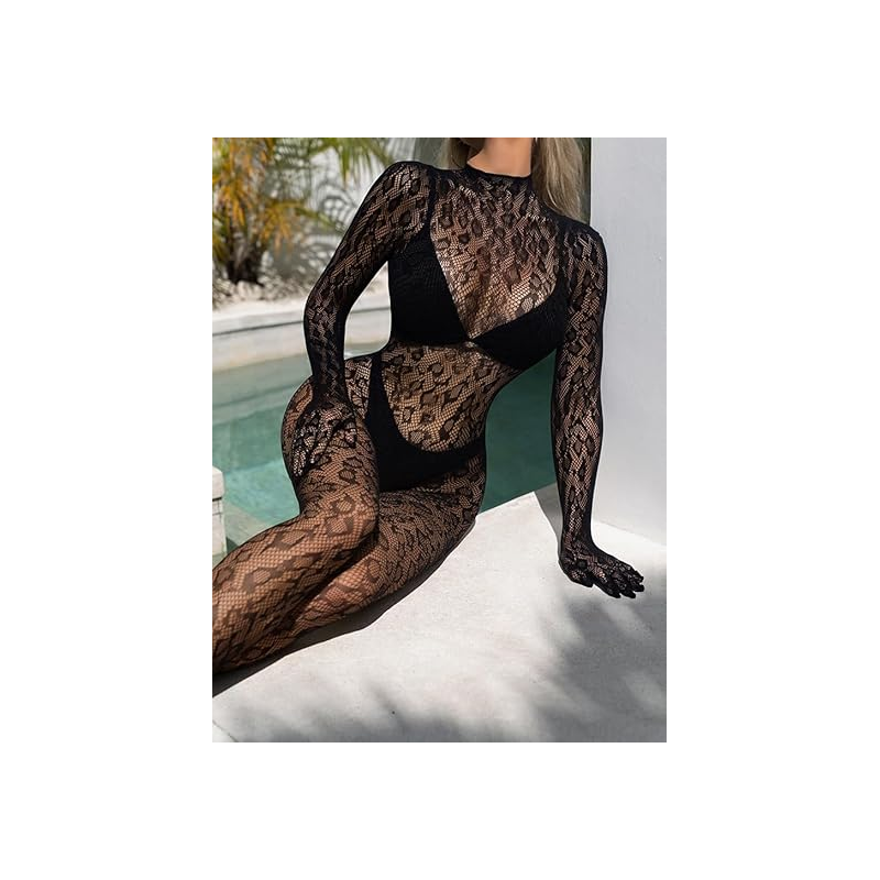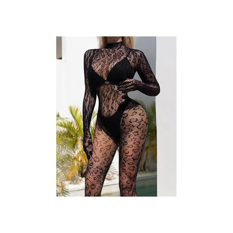 بدلة لانجري ستاتي شفافة حجم واحد لاستخدام واحد لون أسود