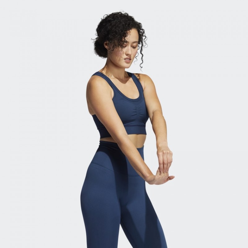 Shapewear for the athlete. This adidas light-support sports bra lifts, shapes and sculpts while giving you the freedom to move. Wear it for dance, yoga or barre. The seamless knit feels buttery soft and smooth against your skin. Targeted support hits where you need it most, so you feel locked in but never held back. This product is made with Primegreen, a series of high-performance recycled materials.
