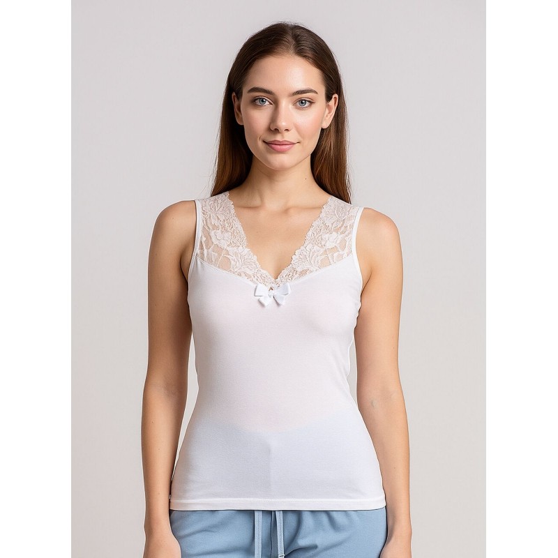 داخلي فانيلا شباح دانتيل بحمالات كتف عريضة للنساء لون أبيض