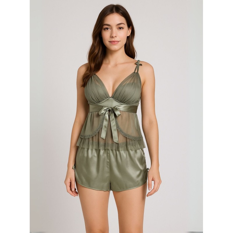 ✅ التصميم: طقم لانجري مكون من قطعتين "one size" بلون زيتي، تصميم بسيط وأنيق، يضمن الراحة والمرونة.