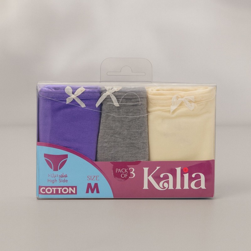 طقم داخلي هاي سايد سادة (3 قطع) للنساء بثلاث ألوان