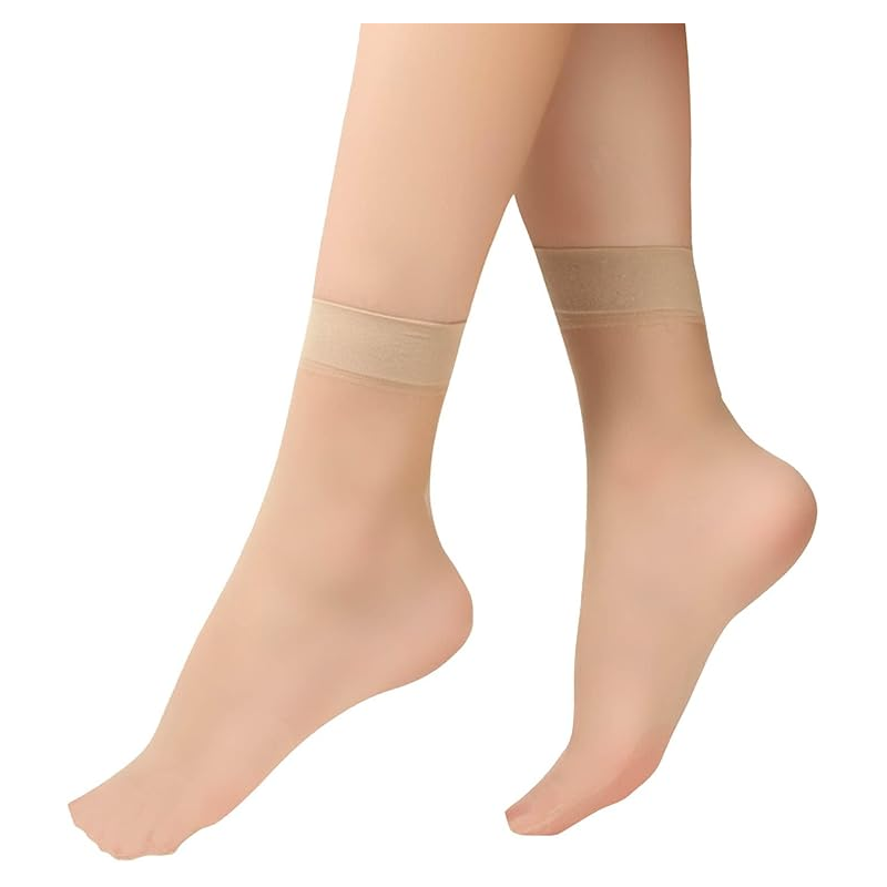 جوارب ستاتي شفاف نايلون (10 أزواج) لون بيج