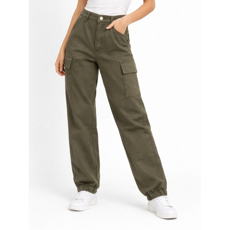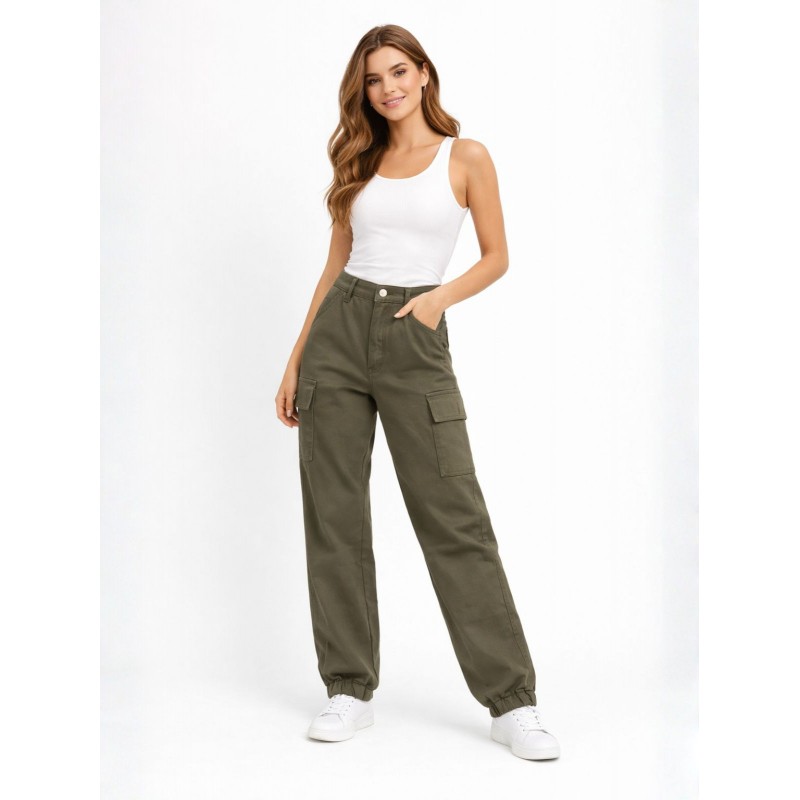 بنطلون نسائي خصر عالي مع جيوب جانبية لون زيتي