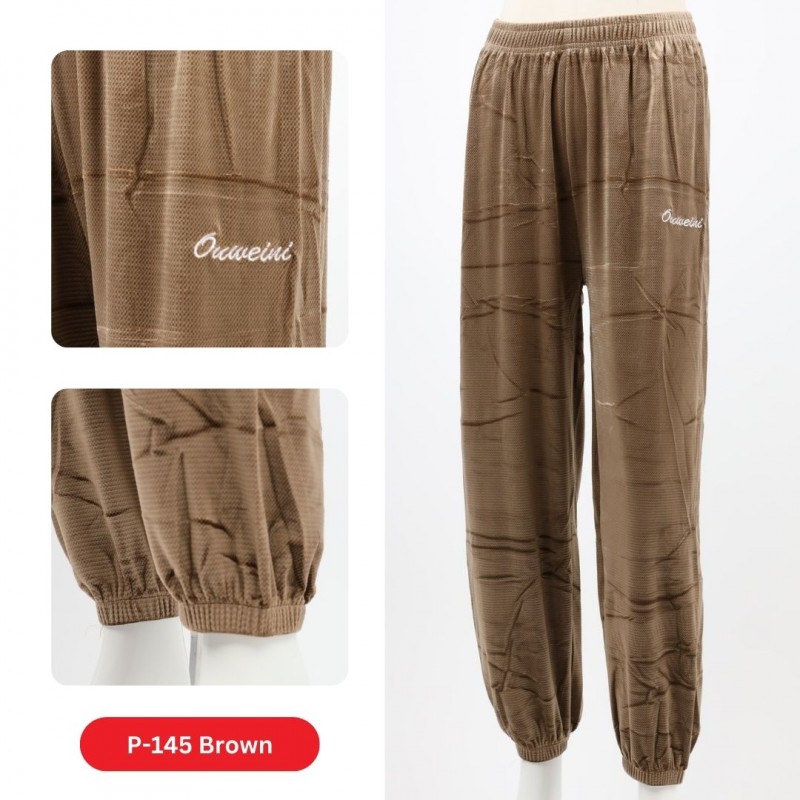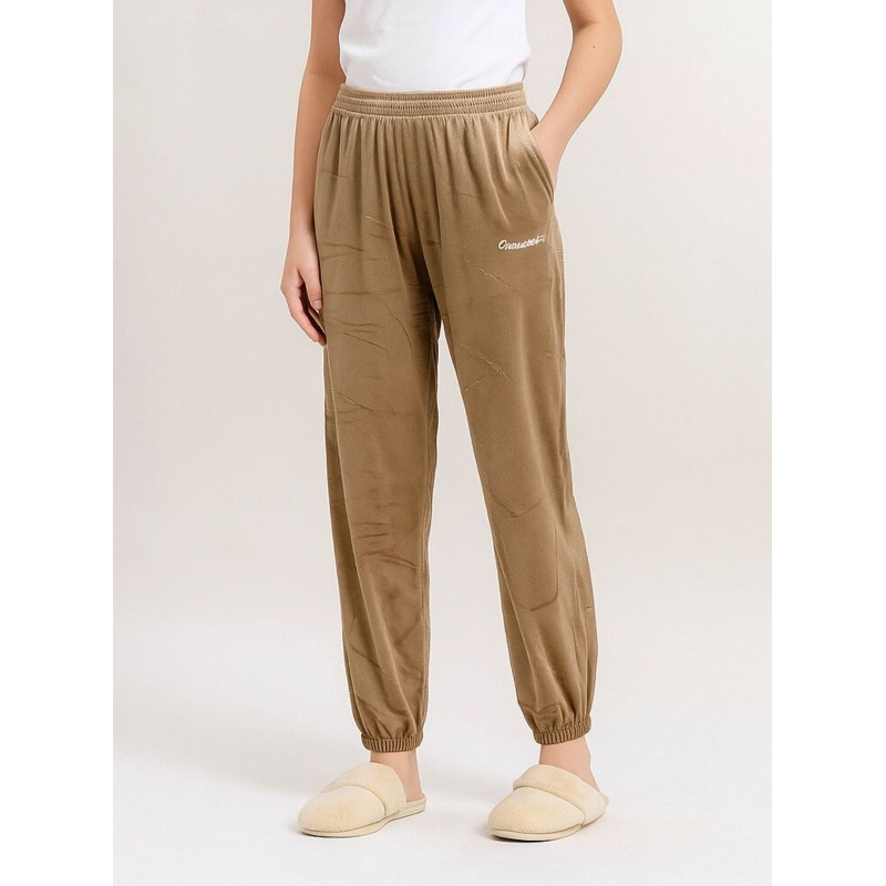 ✅ بنطلون مخمل بتصميم عريض مع أرجل مطاطية للنساء لون بني فاتح ✨