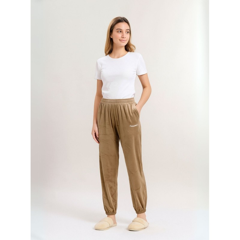 بنطلون مخمل بتصميم عريض مع أرجل مطاطية للنساء لون بني فاتح