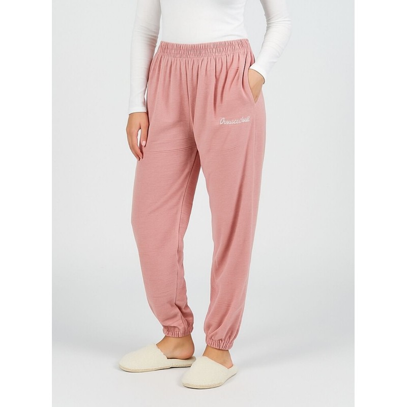 بنطلون مخمل بتصميم عريض مع أرجل مطاطية للنساء لون زهري