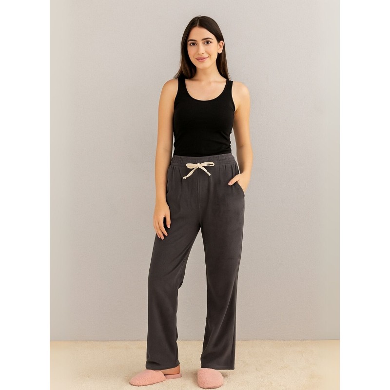 هذا البنطلون الفرو الرمادي الغامق هو خيار رائع للسيدات الباحثات عن قطعة مريحة وأنيقة. التصميم المميز والقماش الدافئ يجعلانه إضافة مثالية لخزانة ملابس المرأة.