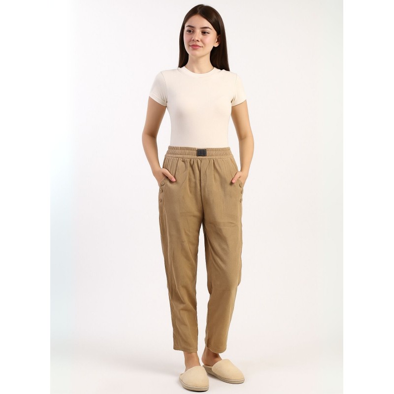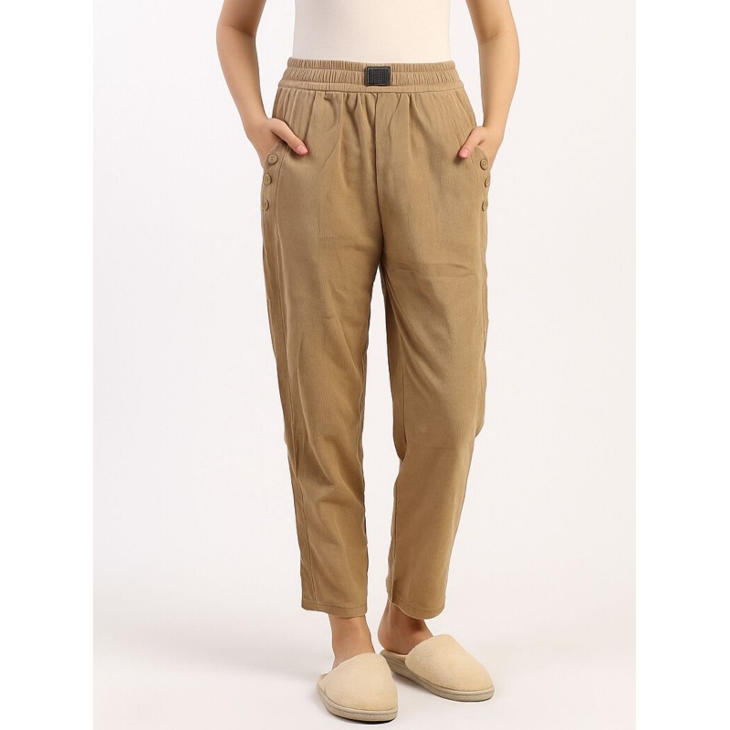 ✅ بنطلون بوي فريند كورد روي للنساء لون بيج ✨