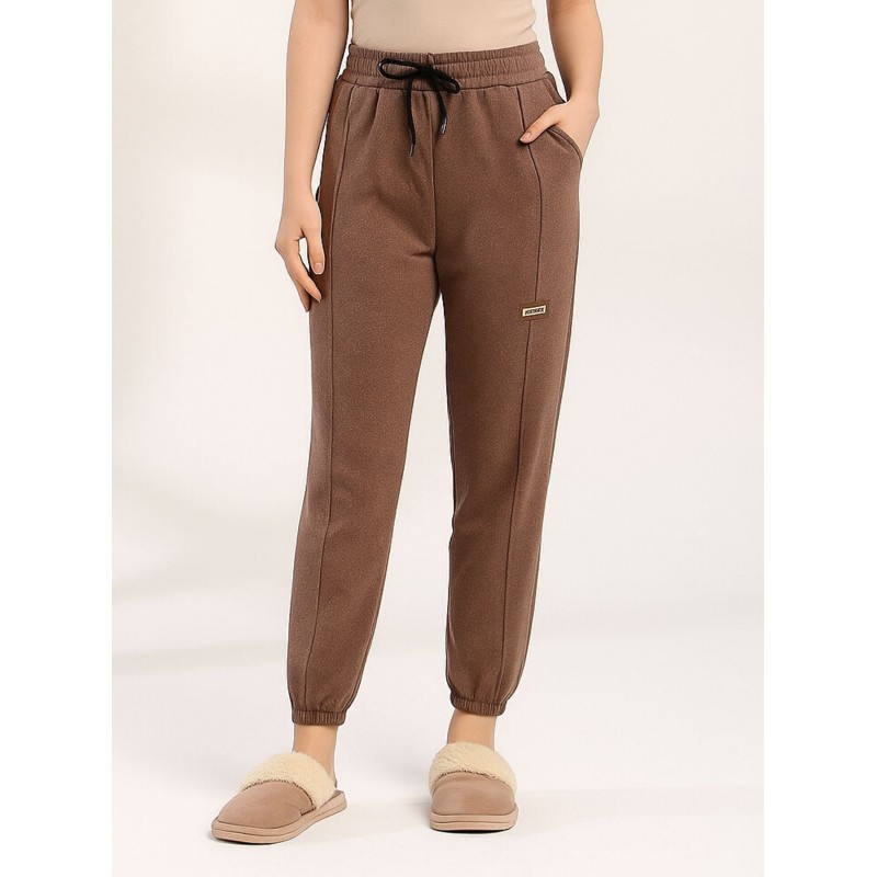 ✅ بنطلون فيليز مبطن مع خط بأرجل مطاطية للنساء لون بني ✨