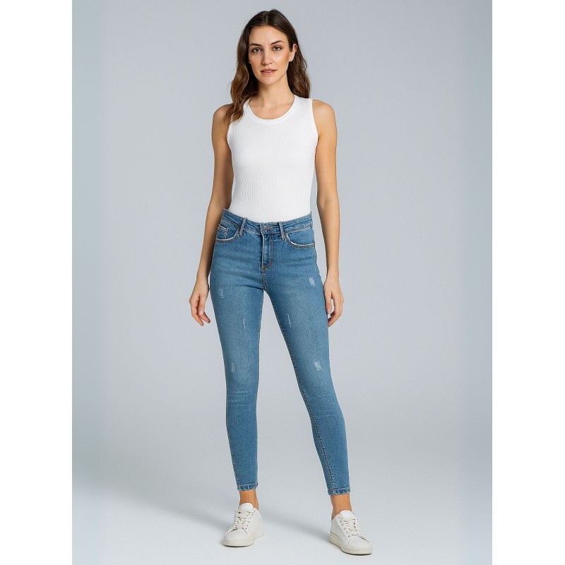 بنطال جينز للنساء بأرجل ضيقة لون أزرق فاتح