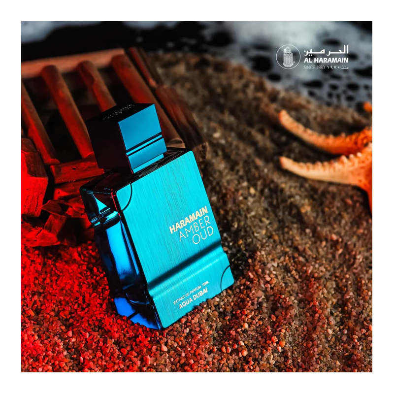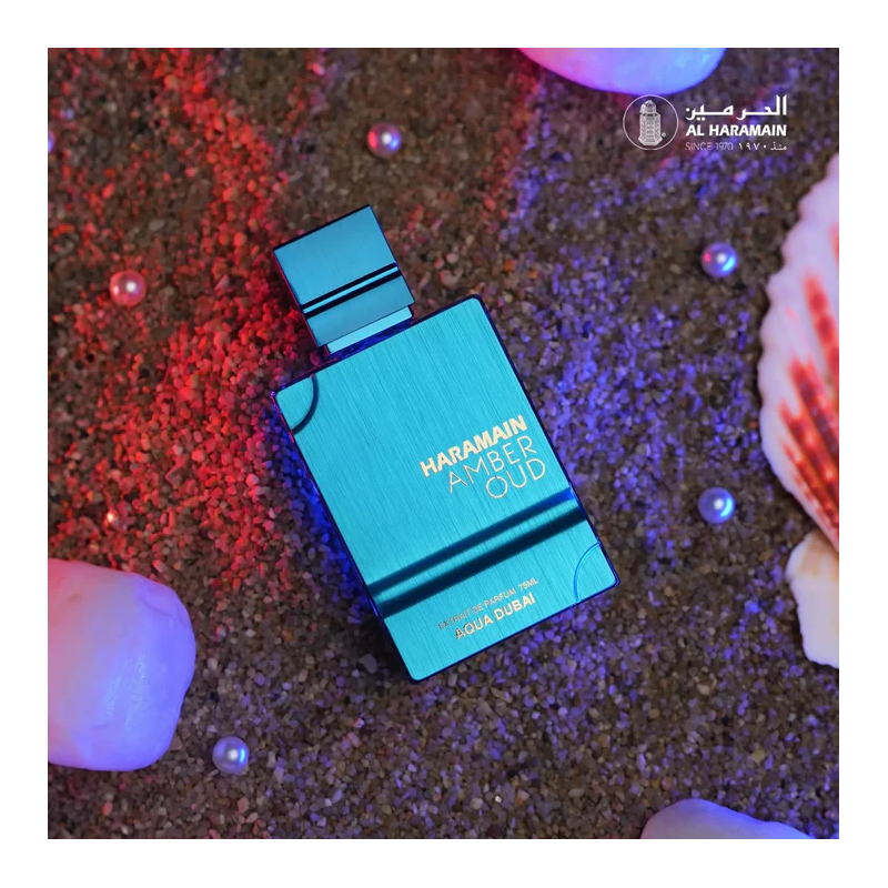 Amber Oud Aqua Dubai Extrait De Parfum 100ml Al Haramain is an aromatic fruity fragrance for both women and men. It has a perfect blend of freshness and richness. It takes you to sun-dappled mornings by the Arabian Sea right immediately, where the fresh sea wind meets the bright city life. This smell is perfect for anyone who wants a scent that is both refreshing and warm. It works well in all seasons and gives off confidence and sophisticated charm day and night.