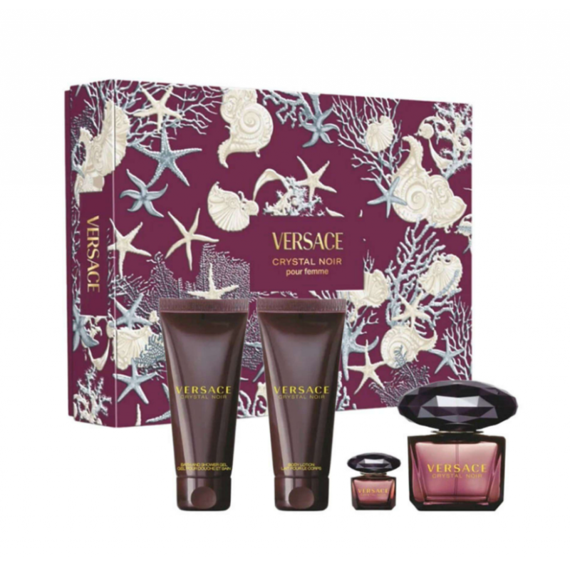 عطر Versace Crystal Noir Gift Set من دار Versace هو طقم نسائي فاخر يجمع بين الجاذبية، الأناقة، والأنوثة الغامضة… تجربة عطرية متكاملة في عبوة واحدة.