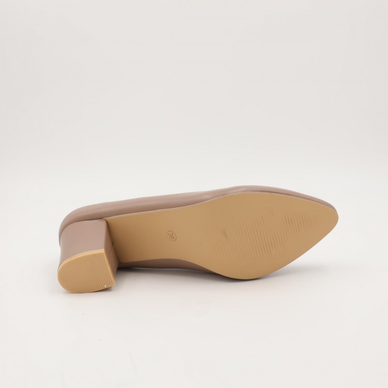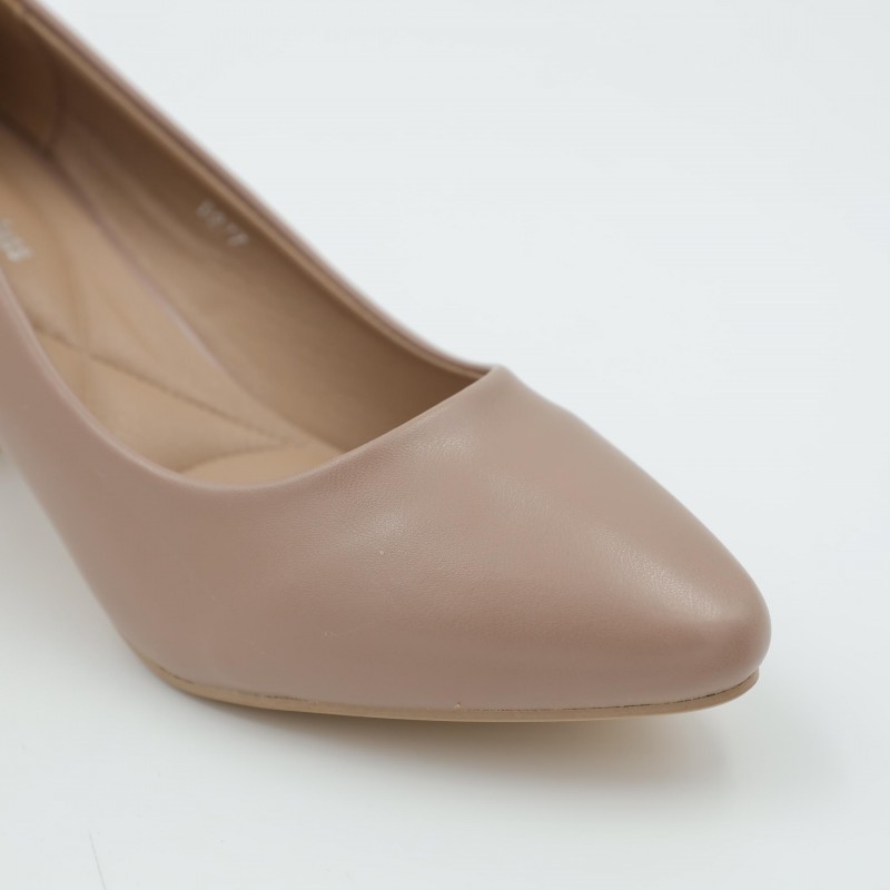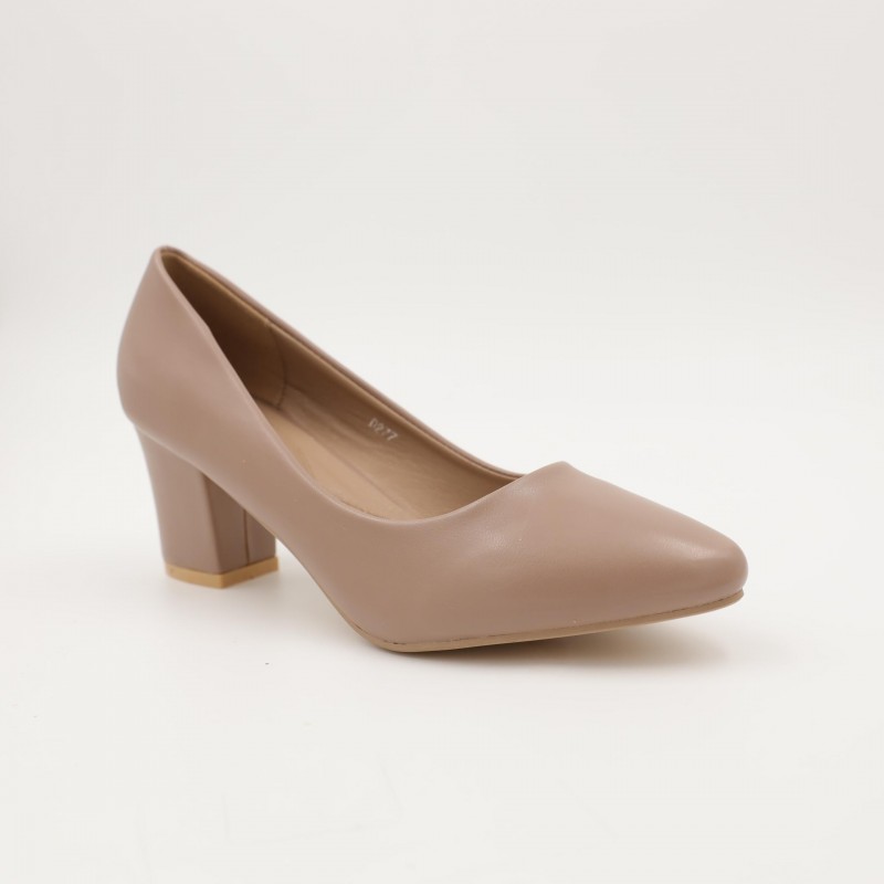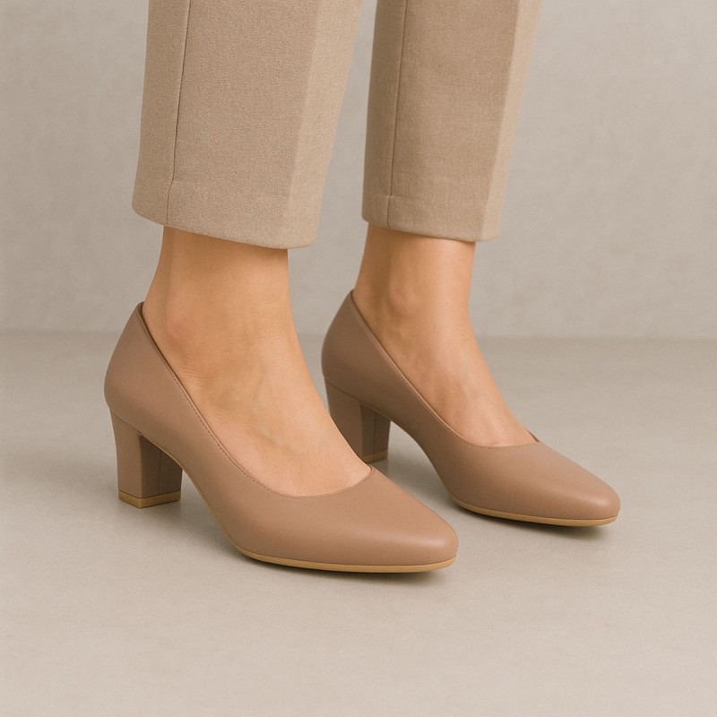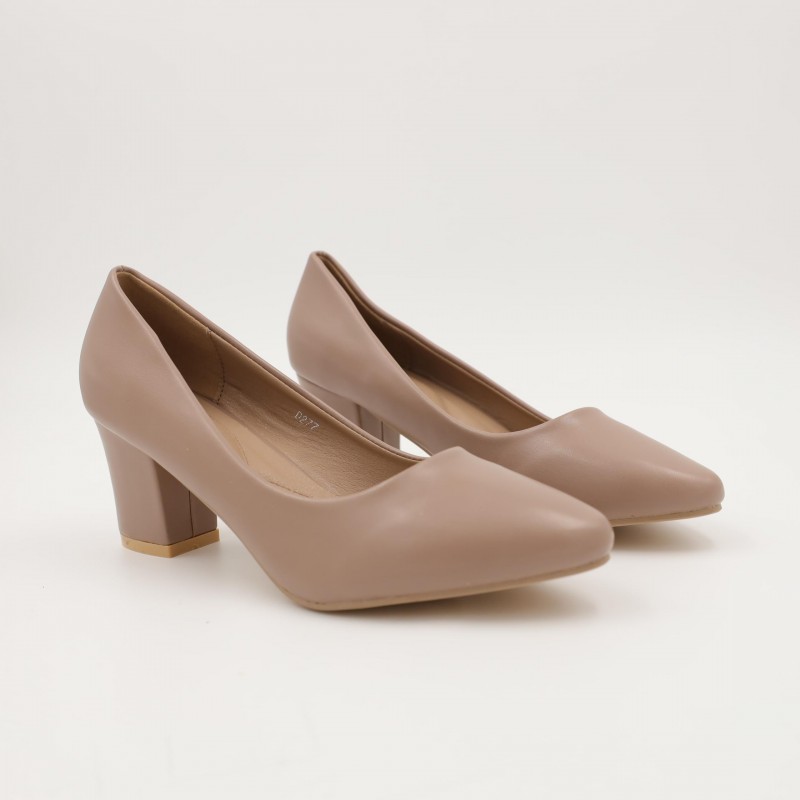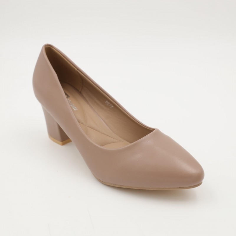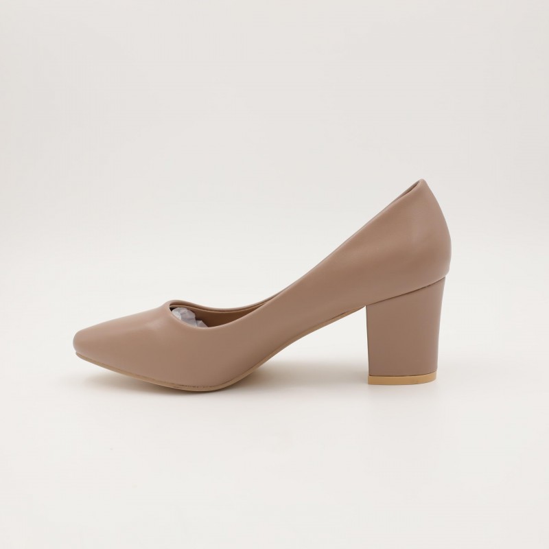 اللون يمنح الحذاء مظهرًا ناعمًا وفخمًا، سهل التنسيق مع الفساتين، البدلات، أو الإطلالات الرسمية العصرية. تصميمه المغلق من الأمام مع كعب ثابت يضمن راحة أفضل مقارنة بالكعوب الرفيعة.