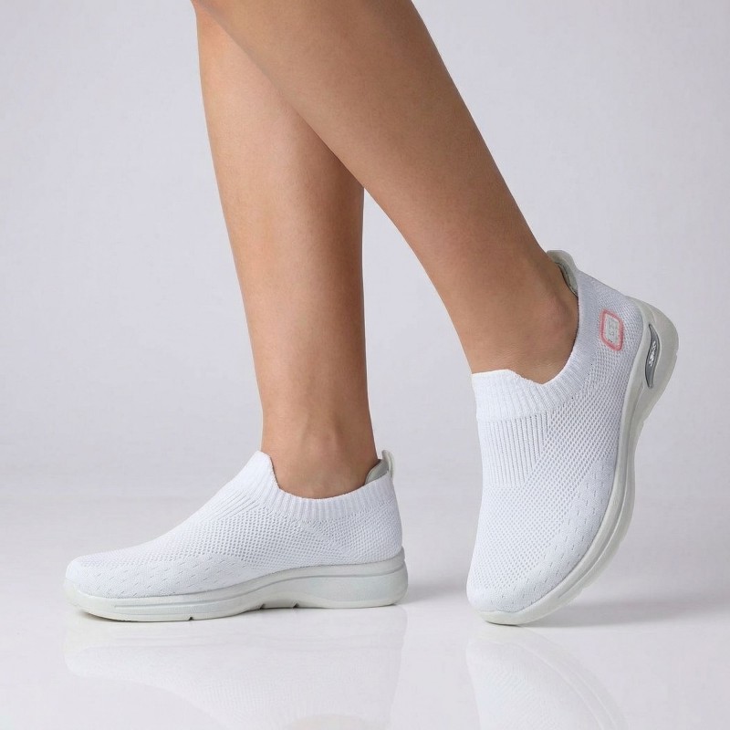 حذاء سبورت بدون أربطة للنساء لون أبيض ونعل أبيض